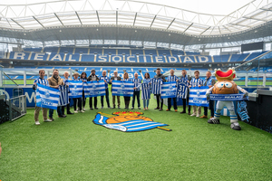 El apoyo de Gipuzkoa a la Real Sociedad se ha visualizado también mediante un acto institucional celebrado en el estadio de Anoeta, en el que han participado la diputada de Cultura y Deportes, Goizane Álvarez; el diputado de Sostenibilidad, José Ignacio Asensio; la diputada de Movilidad, Azahara Domínguez; Felix Urkola diputado de Infraestructuras Viarias y Estrategia Territorial el director foral de Deportes, Roberto Ramajo; Carlos Rivero, representante de la Peña Realzale Basque Txuriurdin de Hondarribia e Iván Saenz, del bar Itxaropena de Hondarribia, así como alcaldes y concejales de los municipios implicados, junto con la mascota oficial de la Real Sociedad, Txurdin, y el vicepresidente del club, Joseba Ibarburu.