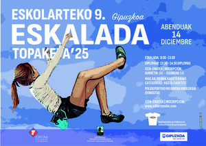 Abenduaren 14an Eskolarteko 9. Eskalada Topaketa 2025 ospatuko da. Gipuzkoako ikasle guztiak ekitaldi honetan parte hartzera animatzen ditugu. Bertan, euren burua gainditu eta eskaladaren munduan esperientzia berri bat bizi ahal izango dute.