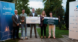 Ioseba Amunarrizek, CaixaBankeko Euskadiko Zuzendari Komertziala den Angel Garabietaren eskutik jaso ditu garaikurra eta txekea. Miren Garmendiari, berriz, Amane Ibañezek, EITB Mediako Kiroletako Zuzendariordeak, eman dizkio sariak.